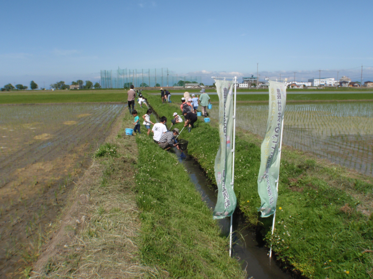 5年生の児童を対象に天の川右岸幹線水路において、水生生物観察会を開催しました。水路に入って生きものを採取し、種類を選別しながら観察しました。田んぼや農業用水路が生きもののすみかとなり、自然豊かな農村環境をつくっていることを肌で感じていただいたことと思います。
